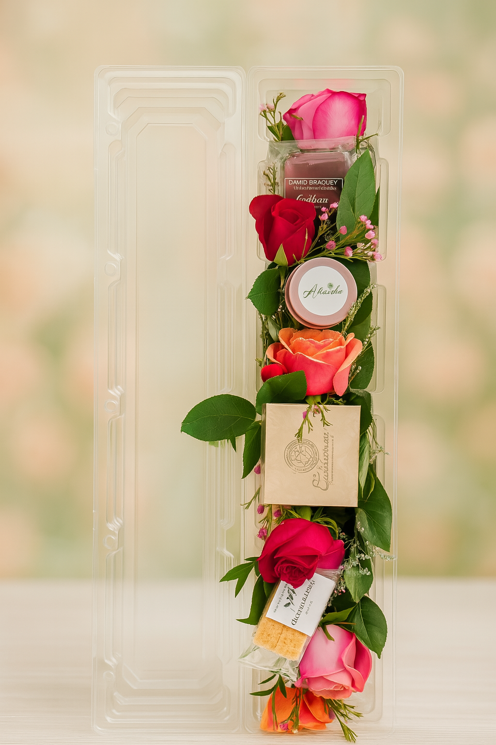 A fresh take on gifting, this House of Blooms exclusive blends the beauty of roses with a curated mix of small-batch indulgences. Nestled inside are half a dozen vibrant roses paired with sweet treats, a candle, and artisanal goodies from boutique makers we love. Perfectly packaged and ready to delight, this gift is thoughtful, elevated, and completely unexpected.